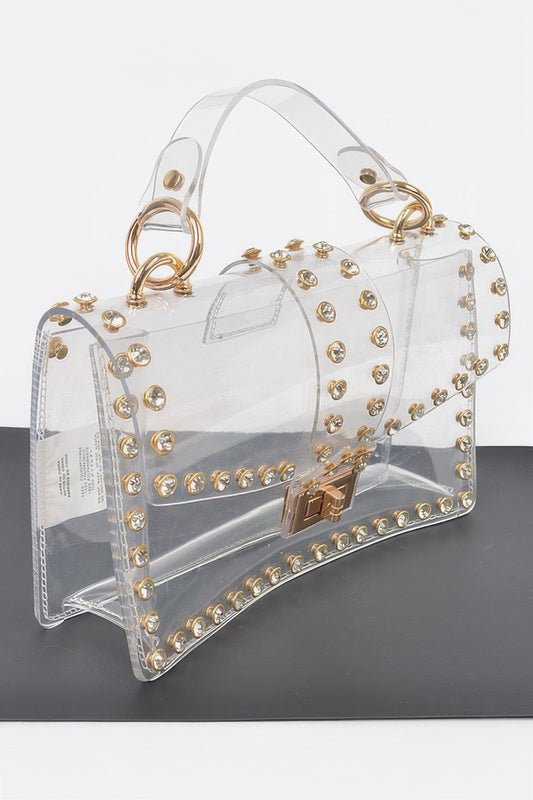 Transparent Rhinestone Top Handle Flap Bag