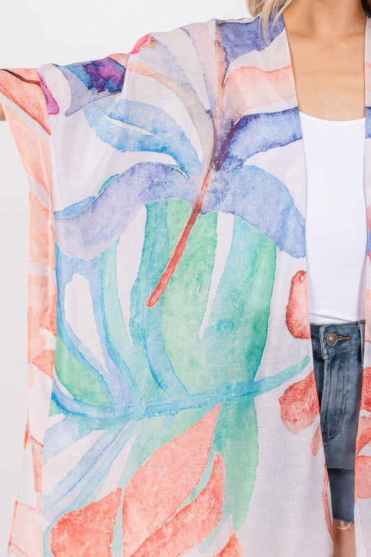 Two Tones Trim Abstract Print Silky Feel Kimono